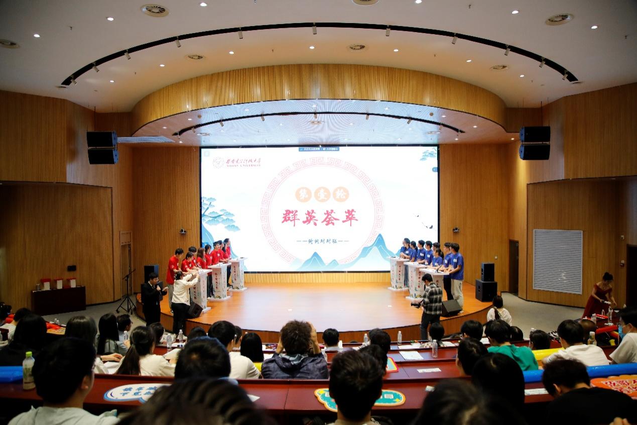 經過初賽、復賽的層層選拔,18名同學進入決賽環節。決賽分為群英薈萃(詩詞對對碰)、大浪淘沙(詩詞小劇場)、誰與爭鋒(詩詞線索題)和巔峰對決(飛花令)四輪進行,采用本科生、研究生混合組隊答題形式進行比賽。