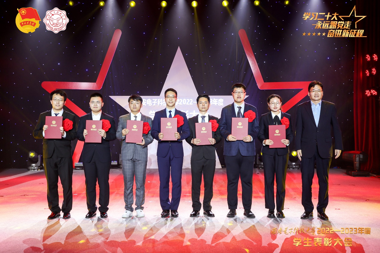 大會對2022-2023年度中涌現出的先進個人和集體代表予以表彰。2022-2023年度,張斌等5名本科生、秦皓楠等5名研究生獲得“校長獎學金”,通信工程學院等9個單位獲得“學生工作先進單位”稱號,通信工程學院團委等9個單位獲得“五四紅旗團委”稱號,岳文偉老師等89個團隊獲得“優秀本科生導學團隊”稱號,電磁空間認知與信息傳輸團隊等9個團隊獲得第七屆“三好三有”研究生導學團隊,劉軒等52名同志獲得“優秀輔導員”稱號,王維佳等19名同志獲得“優秀共青團工作者”稱號,2001015團支部等10個團支部獲得“五四紅旗團支部標兵”稱號,2001018團支部等47個團支部獲得“五四紅旗團支部”稱號,1902019等10個班獲得“十佳標兵示范班”稱號,靳東明等156名同學獲得“優秀學生標兵”稱號,蘇永亮等3073名同學獲得“優秀研究生”稱號,鄭哲健等741名同學獲得“優秀學生(研究生)干部”稱號,章宏等15名同學獲得“優秀共青團員標兵”稱號,徐浩然等10名同學獲得“十佳團支部書記”稱號,張偉華等10名同學獲得“優秀共青團干部標兵”稱號,韓旭等926名同學獲得“優秀共青團員”稱號,孫康耀等536名同學獲得“優秀共青團干部”稱號,計宇清等420名同學獲得“國家獎學金”。