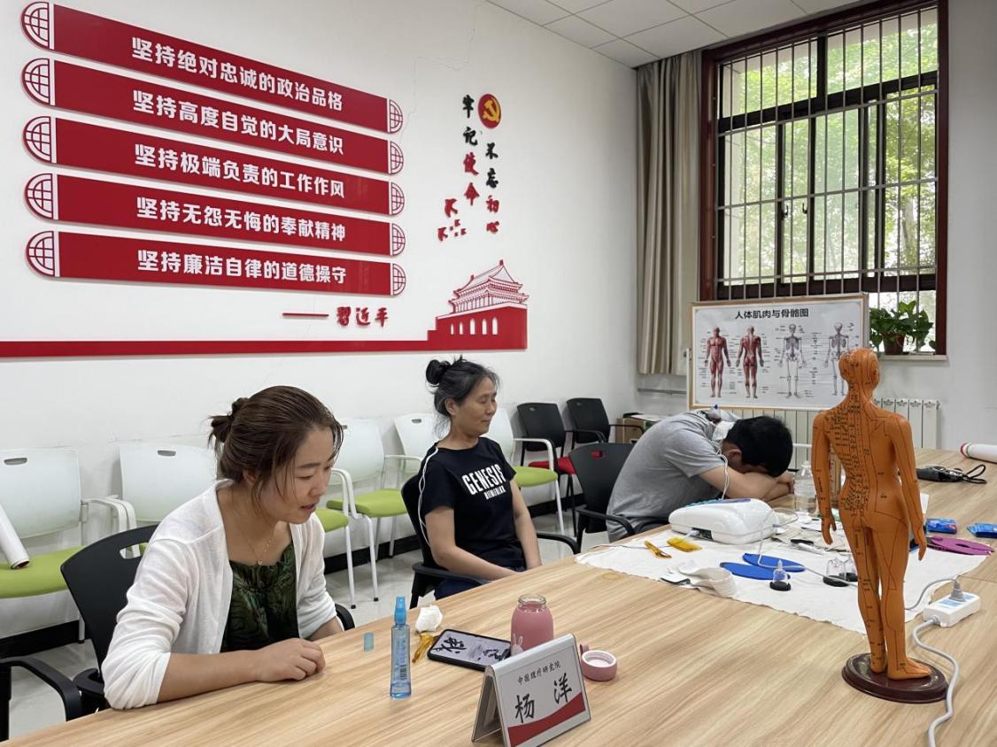 楊洋通過中醫望聞問切、耳針測病等方法為教職工們做亞健康咨詢,傳播中醫治未病健康理念,讓教職工明確身體潛在問題和對應癥狀,并指導大家如何預防疾病。她就部分教職工的頸椎病、高血壓、關節炎、耳鳴等疾病進行面對面健康咨詢診療和康復理療,針對性地進行解決,獲得了一致好評。